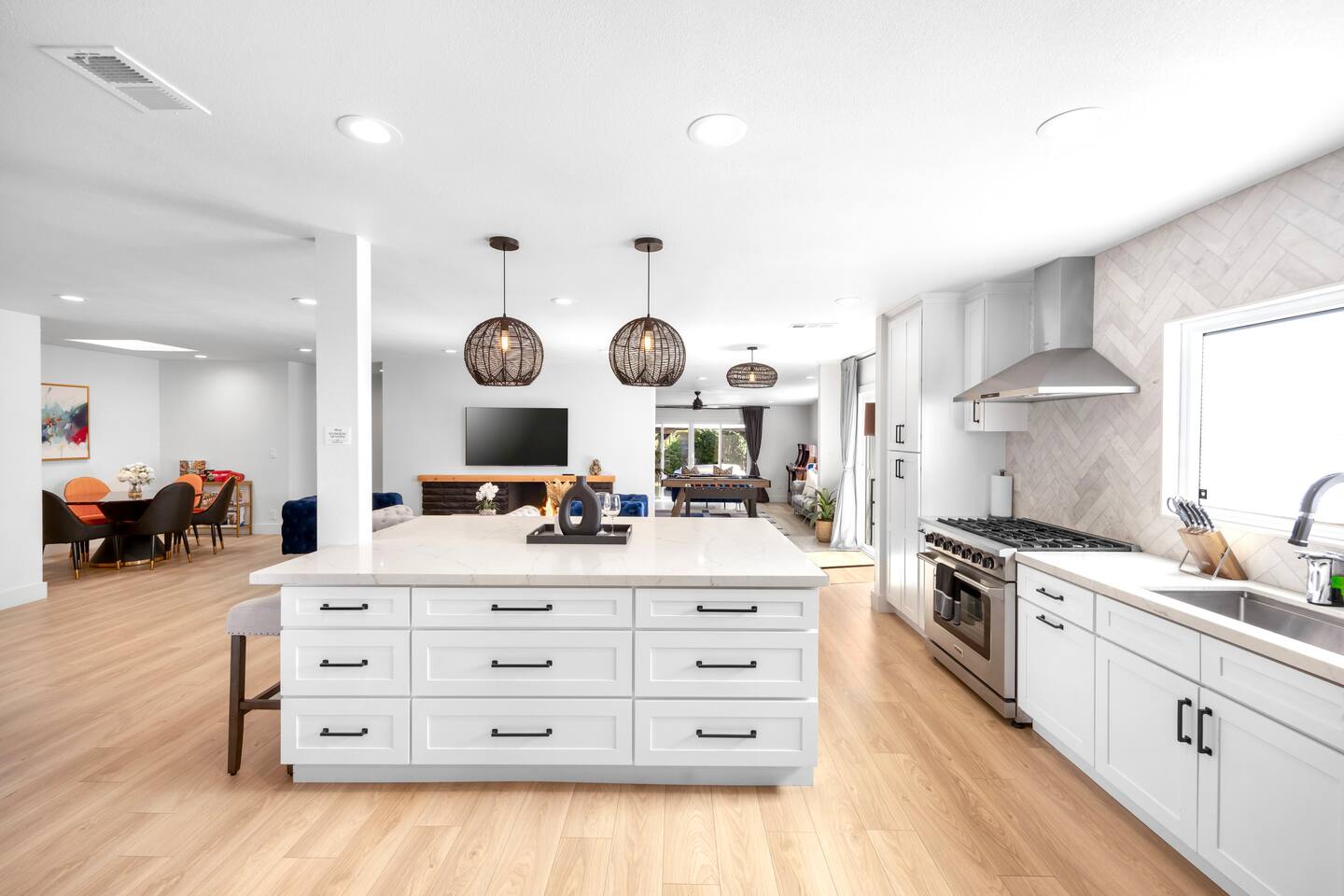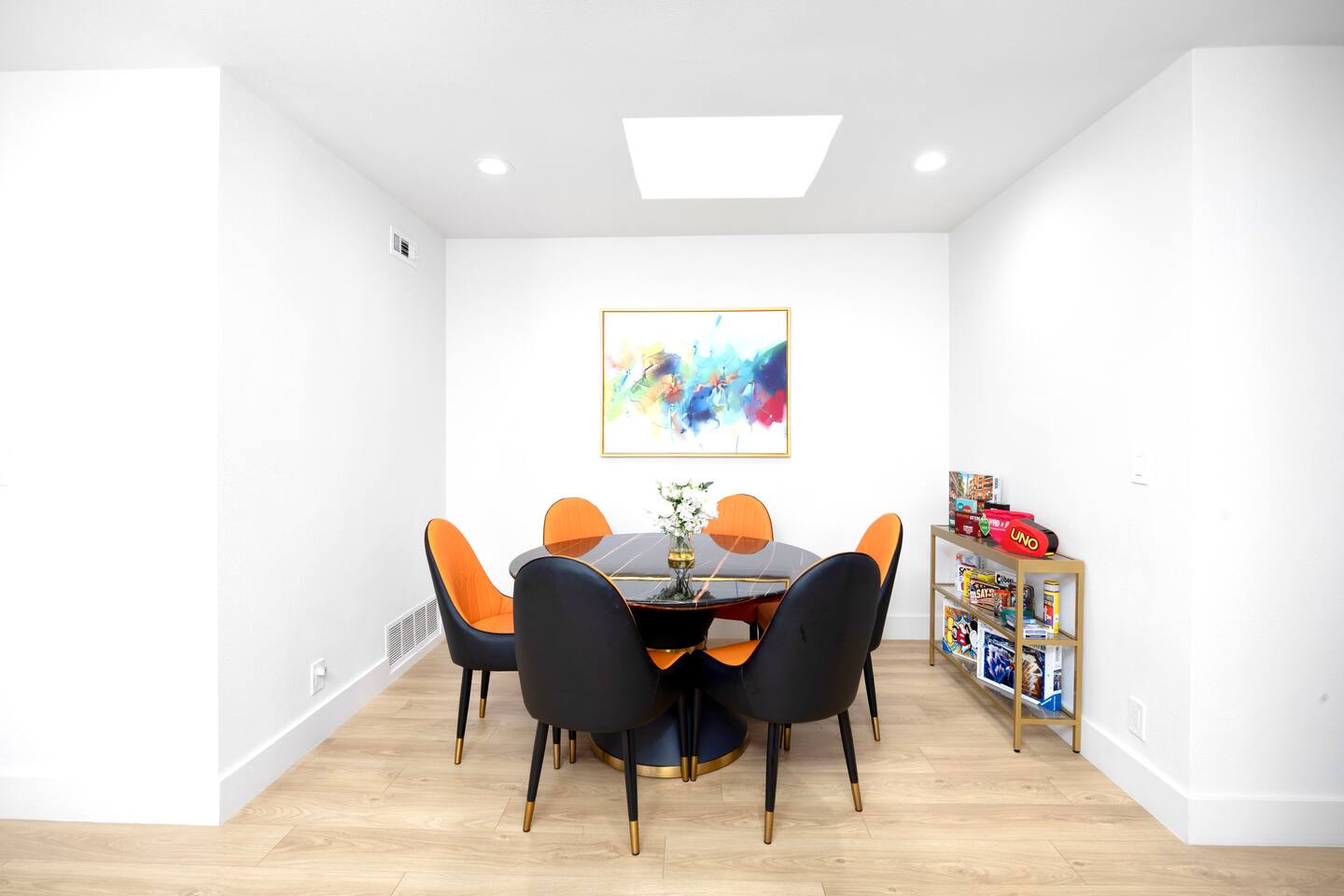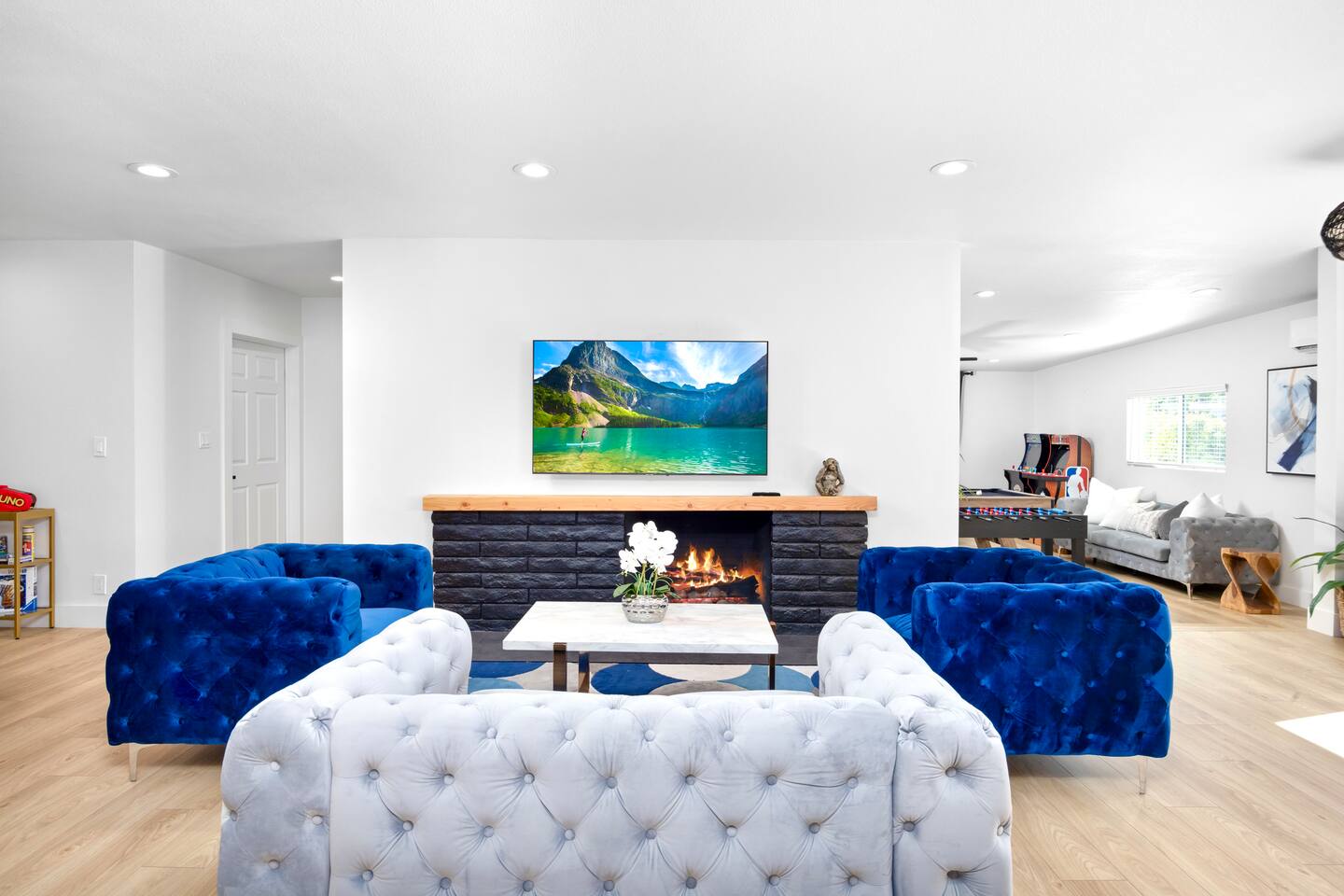 1. Check-In / Check-Out: Check-in: Begins at 4:00 p.m. Check-out: 11:00 a.m. Late check outs require a 24-hour advance notice for approval. If approved, the late check out fee is $100 per hour. Please let us know in advance and we will try our best to accommodate you. A $100 charge will be applied for any lost remote controls. Please ensure all doors and windows are securely locked before departing. 2. Security Cameras: 2 External cameras are installed solely for property protection & security reasons. (e.g., a front door camera is positioned to monitor the front doorway, backyard camera is positioned to monitor the backyard sliding door). They are not actively monitored but only referred to when an issue arises. 3. Noise: Our home is equipped with a noise sensor. Quiet hours are observed from 9 p.m. to 8 a.m. Please be considerate of our neighbors and avoid making too much noise outdoors during these hours. While interior noise is permissible, it SHOULD NOT be audible from outside. NOISE COMPLAINTS WILL result in eviction without refund and additional FINES of $1000. Please note we absolutely DO NOT TOLERATE PARTIES. 4. No Shoes: To keep our space clean and comfortable for all guests, we kindly ask that outdoor shoes be removed upon entering, indoor only shoes are permitted. Guests will be responsible for deep floor cleaning if shoe prints are found. 5. Pet Policy: We welcome small to medium-sized pets with a pet fee of $249 per pet. Kindly inform us ahead of time if you plan to bring a pet. Please be aware that additional charges may apply for any permanent stains or furniture damage found upon checkout. Thank you for your cooperation and understanding! 6. Hot Tub Heating Policy: We offer complimentary hot tub heating & usage, but guests will need to operate it themselves. To assist, we’ve provided a YouTube tutorial which you’ll find in your check-in instructions. Please note the hot tub temperature only increases by 2 degrees per hour, so we recommend turning it on as soon as you check-in and keeping the heat on throughout your stay if you plan to use it more than once. As a friendly reminder, please shower or rinse off before using the hot tub. It helps keep the water clean & fresh for everyone’s enjoyment. Thank you for your understanding! 7. Parking: Parking is available for a maximum of 4 cars. 1 car in the garage and 3 in the driveway. Street parking is readily available if you have more than 4 cars. 8. Smoking: Our property is strictly non-smoking indoors, including tobacco, marijuana, cigars, e-cigarettes, vape pens, and hookahs. Smoking is only permitted in the backyard area. Please dispose of cigarette butts in the trash; littering on the ground is prohibited. A $700 fee will be charged for smoking violations, assessed after checkout. 9. Don’t Leave Food Out: To prevent pests, especially during hot summers, please store all uneaten food in the refrigerator and try to dispose of trash and crumbs daily. Despite regular pest control, the hot weather can sometimes still lead to bugs finding their way in if food is left out! Extra trash bags, rags, and cleaning supplies are available under the sink for your convenience. 10. Lost and Found: We cannot be held liable for any lost, misplaced, stolen, or damaged belongings, including those left behind after your departure. We are not responsible for any items left behind after checkout. If something is found, we’ll do our best to return it, but safekeeping cannot be guaranteed due to frequent turnovers and multiple teams accessing the property. If shipping is required, it must be arranged and paid for by the guest. 11. Damages or Theft: Guests are responsible for any damage or theft occurring during their stay, including damage to rooms, fixtures, furnishings, arcade machines, and equipment. This may include property damage, missing items, smoking fees, cleaning fees, and guest compensation. By booking this property, you acknowledge that you have read, understood, and agreed to comply with these rules. Please note that any violations, such as hosting events or parties, smoking indoors, bringing pets without approval, or misrepresenting the number of guests, may result in additional charges upon checkout and or eviction without reimbursement.
