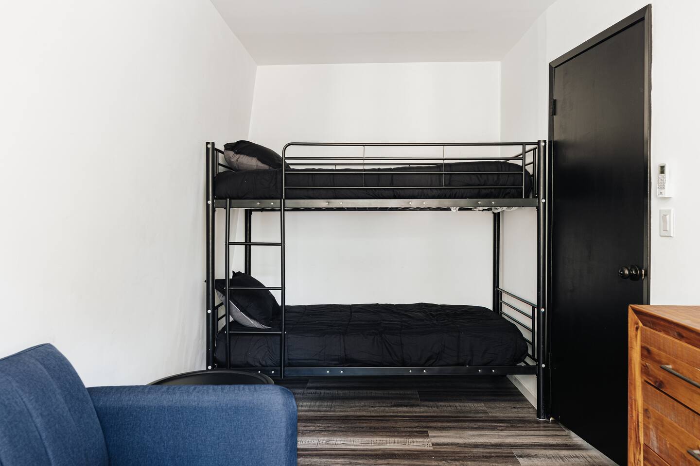 🌟HIGHLIGHTS🌟 ✔️ 3 Smart flat-screen TVs with streaming services ✔️ Board games and a cozy stone decorative fireplace for evenings ✔️ PS4 for those who love video games ✔️ Individual heater / AC units in every room ✔️ Fully equipped kitchen with essential cookware, coffee maker, and basic spices ✔️ High-speed Wi-Fi and workspace for remote work 🌟BEDROOMS🌟 ✔️ Bedroom 1: Queen bed with cozy thick bedding ✔️ Bedroom 2: Twin bunk bed with a comfy sofa for extra lounging ✔️ Two single twin roll-out mattresses available for additional sleeping space located in the master bedroom closet 🌟LIVING / DINING AREA🌟 ✔️ Living Room with sofa and spacious seating for all ✔️ Dining table with seating for 4 🌟OUTDOOR SPACE🌟 ✔️ Front yard with seating for up to 5—ideal for enjoying morning coffee or stargazing ✔️ Spacious backyard featuring a private hot tub, fire pit - NOTE: Backyard fire pit is for aesthetics only. The front porch propane one can be used. Simply twist the knob and light the silver tube on top.
