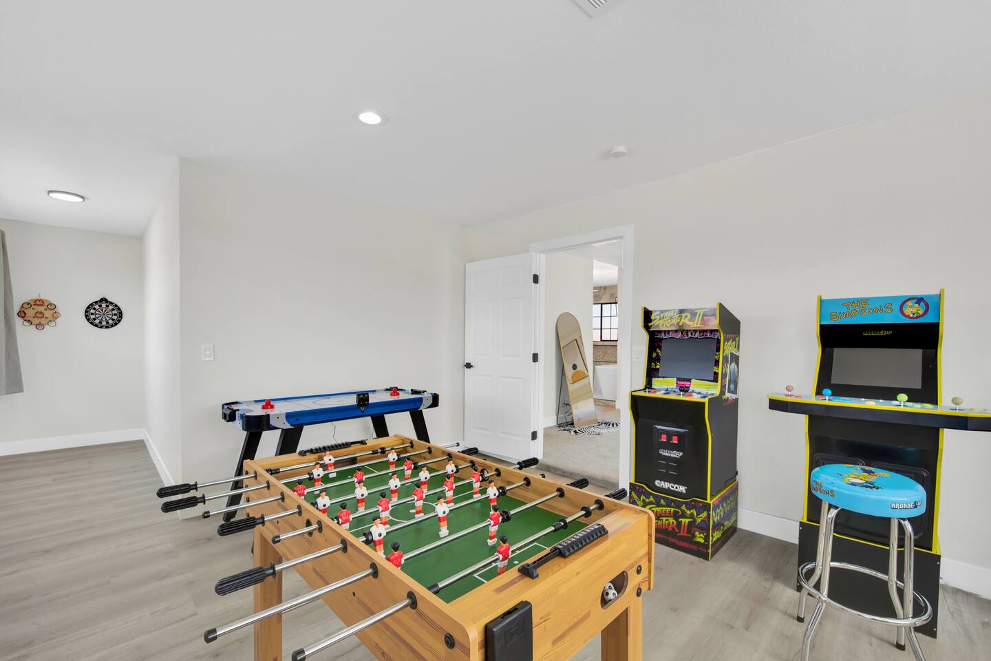 Before booking, please review the house rules. Our newly remodeled home offers a luxurious and comfortable stay for travelers who appreciate style and class in Las Vegas. ⭐️LOCATION⭐️ ✔️ 8 Minutes from The Strip ✔️ 8 Minutes from Harry Reid International Airport ✔️ 8 Minutes from Las Vegas Convention Center ✔️ 13 Minutes from Downtown Las Vegas ✔️ 15 Minutes from North Premium Outlet ✔️ 15 Minutes from South Premium Outlet ✔️ 15 Minutes from Allegiant Stadium ⭐️BEDROOMS & BATHROOMS⭐️ The home features 4 spacious bedrooms with luxurious king beds and mattresses, all topped with soft, quality linens and a 5th bedroom we turned into a Game Room topped with a sofa bed. Additionally, we also have 1 twin air mattress & 1 full air mattress for those who need a little more room. There are 3 lavish full bathrooms stocked with essentials and plenty of fluffy towels, so you can feel pampered during your stay and 2 half baths, one on the first floor & one near the pool so you never have to go through the house just to use the restroom 😌 ✔️ Master Bedroom #1: 1 King Bed ✔️ Master Bedroom #2: 1 King Bed & Sofa Bed ✔️ Bedroom #3: 1 King Bed ✔️ Bedroom #4: 2 Full Beds ✔️ Game Room #5: 1 Sofa Bed ✔️ Living Room: 1 Sofa, 1 Twin Air Mattress, 1 Full Air Mattress Central Family Bathroom: ✔️ Soft Fluffy Towels ✔️ Soap, Shampoo, and Body Wash ⭐️GAME ROOM⭐️ ✔️ Arcade Machines ✔️ Air Hockey Table ✔️ Foosball Table ✔️ TV with Sofa Bed ✔️ Magnetic Dart Board ✔️ Ring Toss Game ⭐️KITCHEN & DINING⭐️ Our gourmet chef's kitchen is fully equipped with everything you need to prepare your favorite meals, including a freestanding oven, cooktop, and large fridge/freezer. Enjoy quality cookware, dinnerware, utensils, and a coffee machine to start your day right. Gather around the elegant dining table with seating for eight, perfect for family meals or a fun game night with our selection of board games. ✔️ Stainless Steel Appliances ✔️ Coffee Maker ✔️ Cookware, Dinnerware & Utensils ✔️ Dining for eight Our goal is to make our beautiful home a highlight for your Vegas trip. Let us know if there’s anything we can do to make your stay more enjoyable 😊