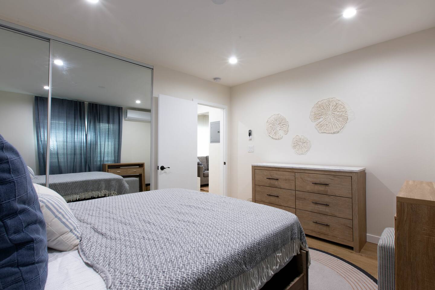 🛋 Stylish & Comfortable Living Step into an open-concept space that exudes seaside elegance. The living room is bathed in natural light and features cozy seating and a smart TV for your entertainment. The calming, beach-inspired decor sets the tone for a relaxing stay. The fully equipped kitchen is a dream for home chefs, boasting stainless steel appliances, sleek quartz countertops, and a subway tile backsplash. Whether you're preparing a quick breakfast or a romantic dinner, you'll find everything you need. The serene bedroom is designed for restful nights with a comfortable bathroom offering: ✔️ Plush queen bed with premium linens ✔️ Ample closet space ✔️ Bathroom features marble-style tiling ✔️ Bathtub shower combined ✔️ Basic toiletries (think shampoo, conditioner, body wash) ✔️ Bath towels, hand towels & beach towels! 🌟 Why You’ll Love It Prime Location: Walk to the beach, marina, and local attractions within minutes. Enjoy the vibrant Long Beach atmosphere with nearby dining, shopping, and entertainment. Unbeatable Views: Take in stunning sights of the marina and city skyline right from your doorstep. Modern Comforts: Stay connected with high-speed Wi-Fi, enjoy air-conditioned comfort, and make use of the dedicated workspace if you're working remotely. 🚗 PLEASE NOTE: Our property has street parking only. Parking availability may vary depending on the time of day. 🏖 Nearby Attractions Long Beach Shoreline: A 5-minute walk to sandy beaches and ocean breezes. Aquarium of the Pacific & Pike Outlets: Explore marine life or shop till you drop, just 10 minutes away. Belmont Shore: A short drive to boutique shopping, trendy restaurants, and lively nightlife. 🌴 The Perfect Getaway Whether you're exploring Long Beach's attractions, lounging on the beach, or working remotely, this apartment offers everything you need for a memorable stay. Its modern amenities, beautiful design, and unbeatable location ensure your visit will be nothing short of perfect. 💫 Don’t wait—book now and experience coastal living at its finest!